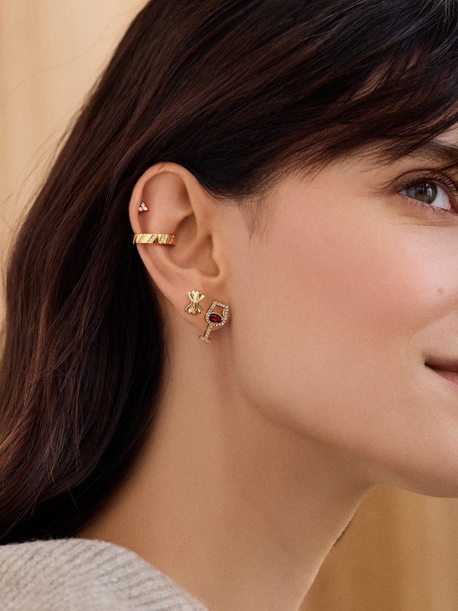 Carb lovers. this one’s for you. Our Endless Pastabilities Earring Set includes pave wine glasses paired with bowtie pasta stud earrings. The wine glasses are crafted with dainty stones to resemble your favorite red wine. Fastened with post back closures. mix and match these gems to represent your everyday pasta cravings. Please note this only comes with two sets of earrings. the red wine and bowtie pasta.