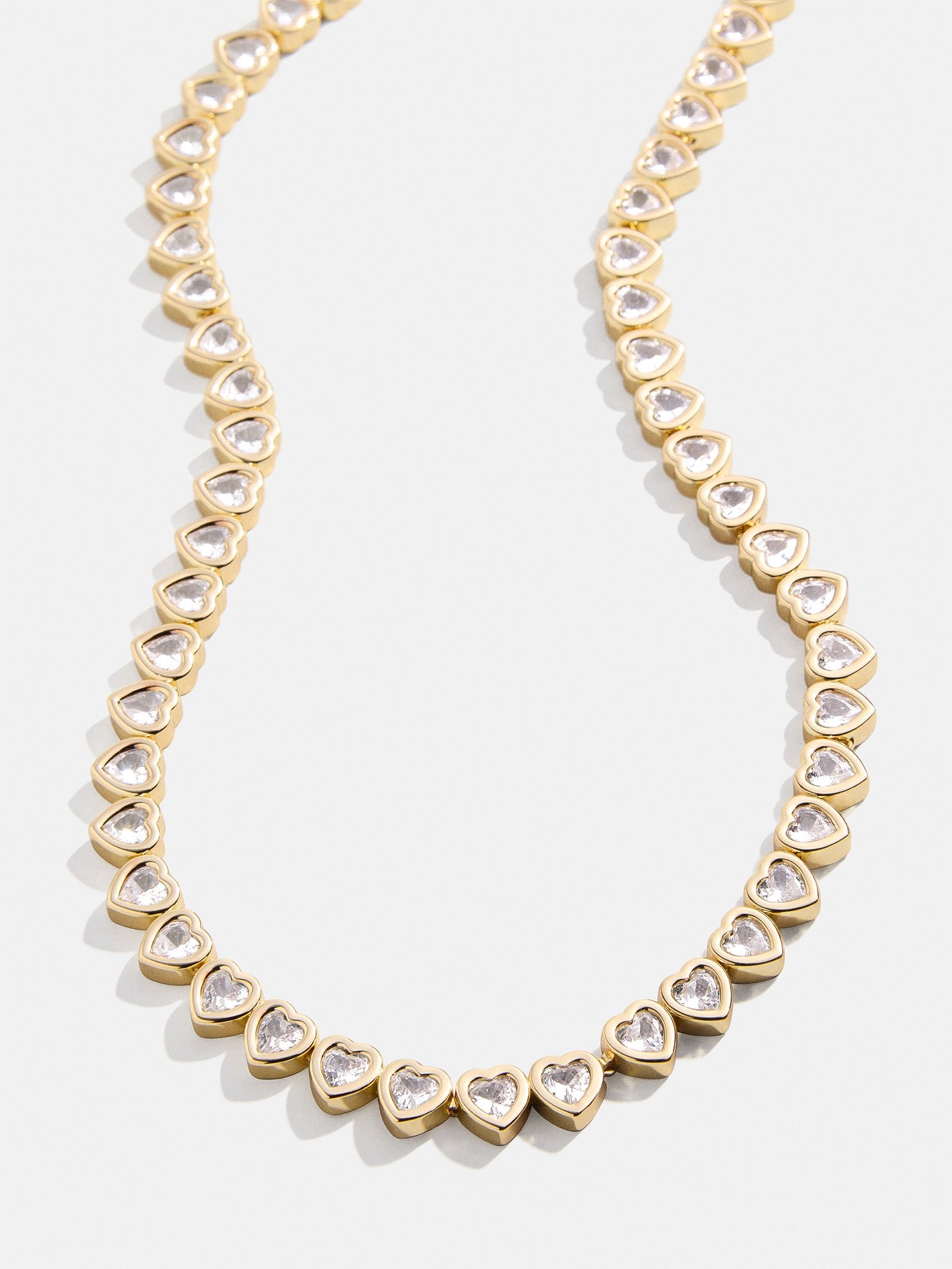 You can’t go wrong with a classic tennis necklace design. The Haley Tennis Necklace is an eternity band fitted with clear crystals. It’s the perfect heart style to add to your collection!