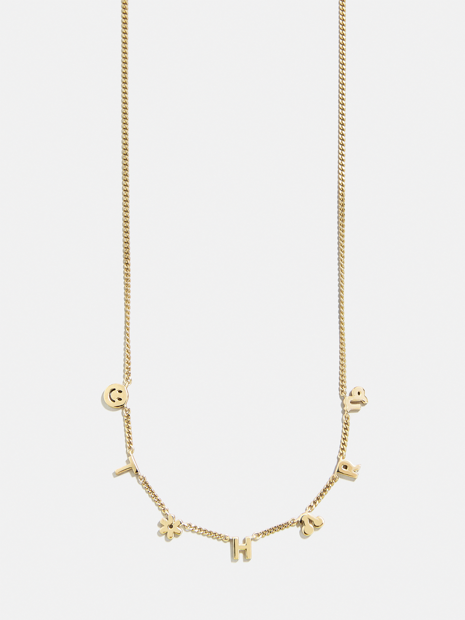 Be the icon you are — in a luxe. cheeky take on the nameplate necklace. now available in a smaller size for a closer fit. Choose from letters. numbers and motifs so you can spell a name and top it off with a symbol or craft a meaningful mix.