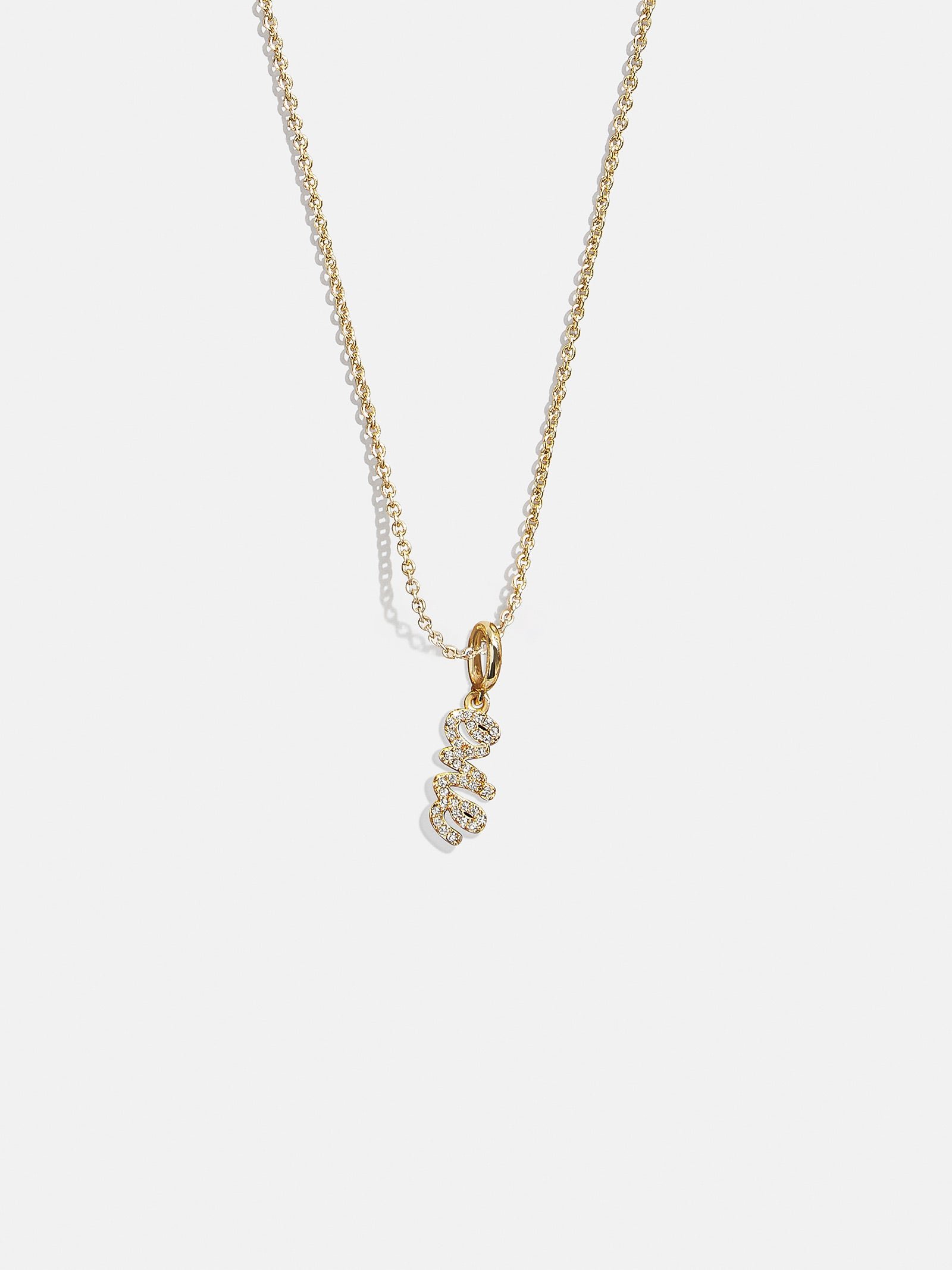 Includes up to 5 different gold nameplates. each set on a dangling cluster charm