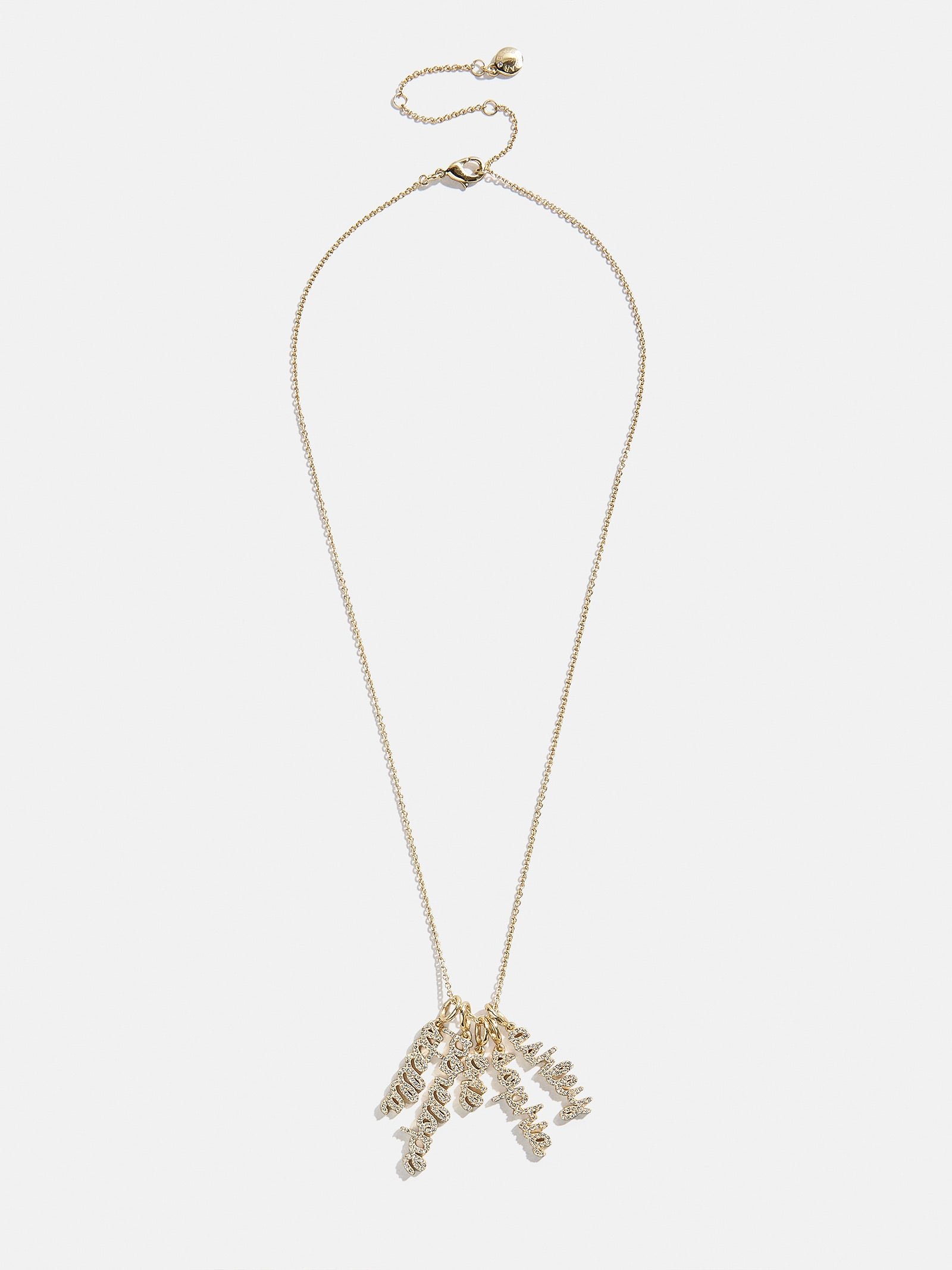 Our best-selling nameplate necklace — now available in our much-loved cluster design so you include all your favorite names and phrases in one special accessory.