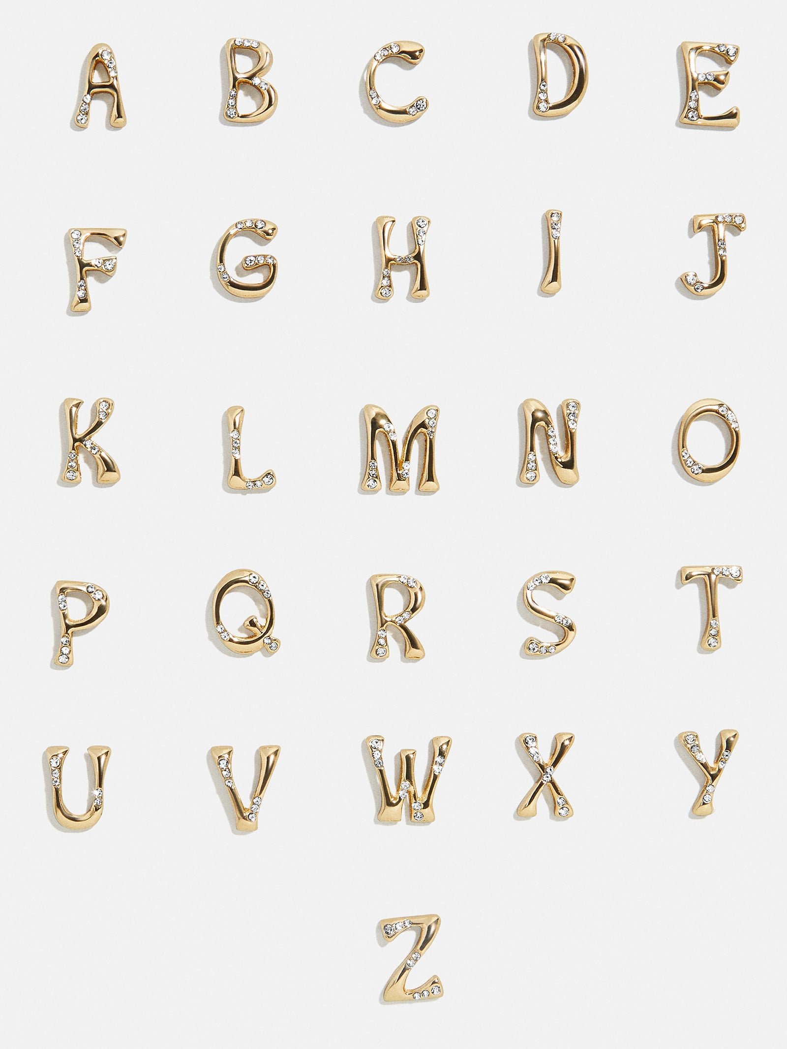 • Customize with up to 9 capital letters. crafted in gold with crystal accents