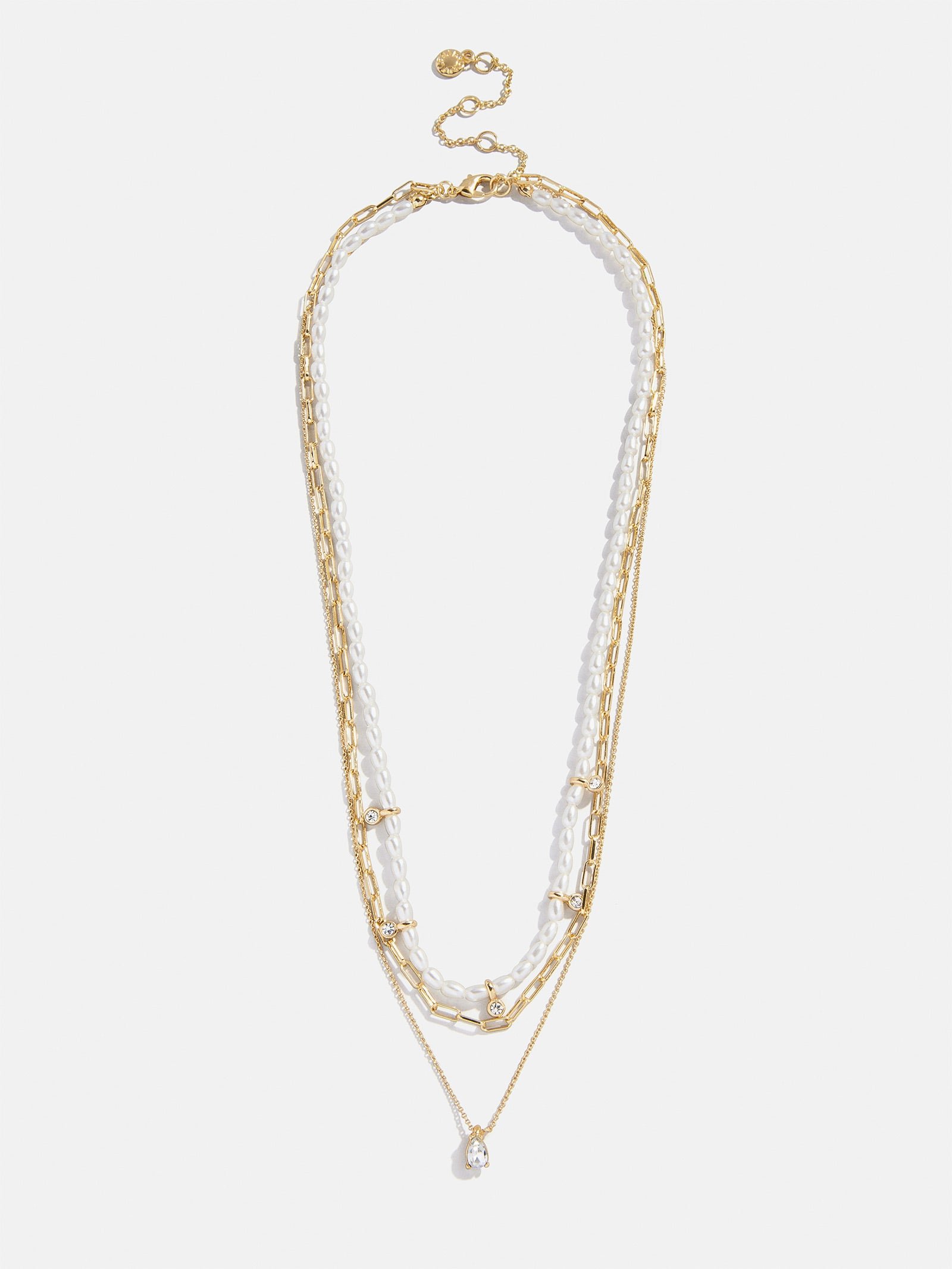 Three effortless necklaces put on with one easy clasp. This elegant layered necklace styles itself. Here’s what it includes: