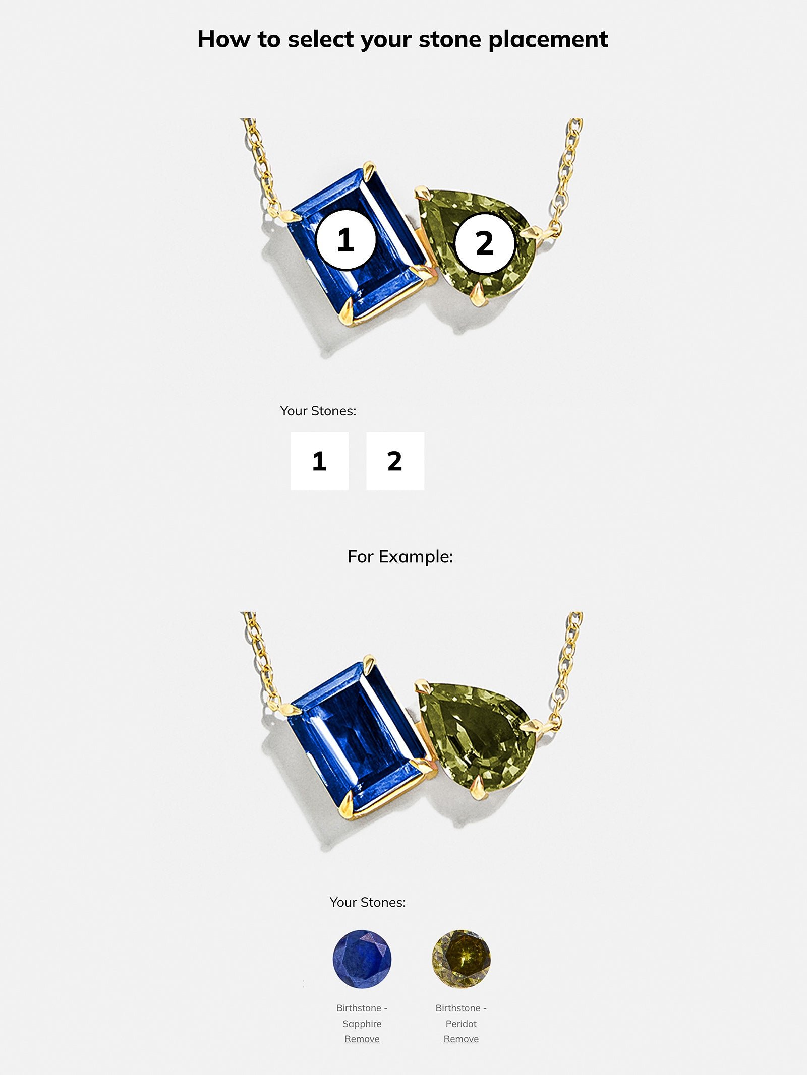 - You’ll personalize one emerald-cut stone and one pear-cut stone
