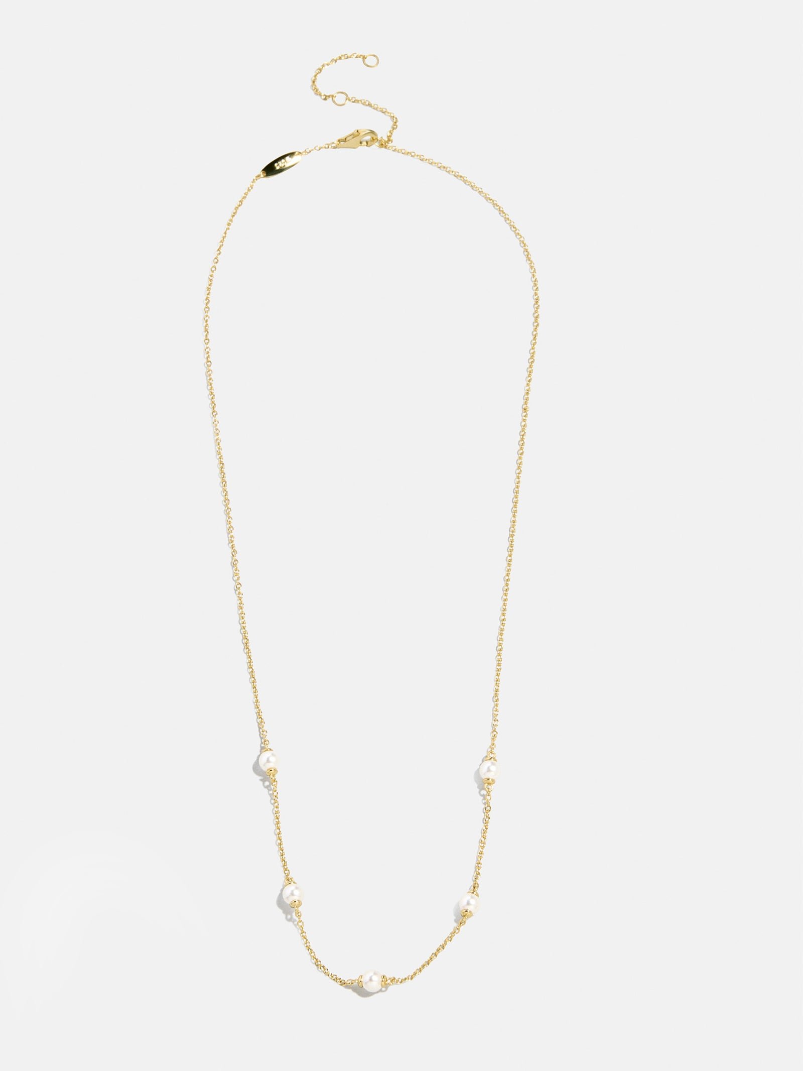 - Features spaced out pearls on a classic gold chain